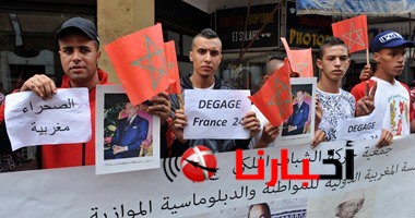 تظاهر مجموعة من المغاربة في الرباط العاصمة المغربية اعتراضا علي تحريناة فرانس 24 التلزيونية علي انفصال الصحراء الغربية عن المغرب مطالبة السلطات بطردها .