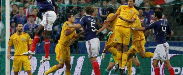 وذلك بصوت كل من المعلق التونسي عصام الشوالي، القنوات الناقلة مباراة فرنسا ورومانيا والقطري يوسف سيف. وبالعودة الي تفاصيل مباراة فرنسا ورومانيا في المباراة الافتتاحية لكاسعصام الشوالي في الملعب.
